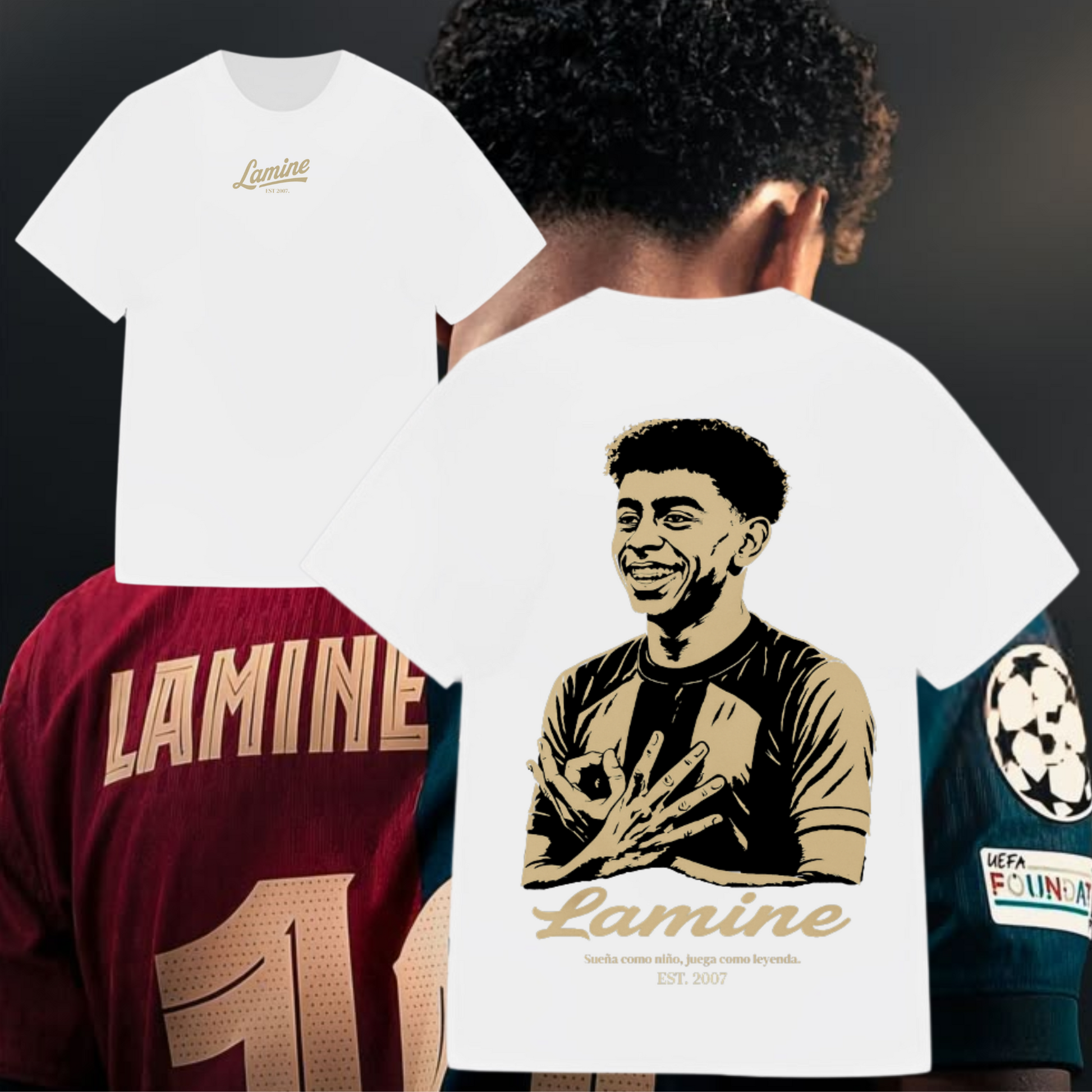 Disponible en varias tallas y colores, el diseño incluye el nombre y dorsal de Lamine Yamal, el prodigio de La Masía que está revolucionando el fútbol europeo. Ideal como regalo o para coleccionistas, esta camiseta rinde homenaje a uno de los jugadores más prometedores del momento.