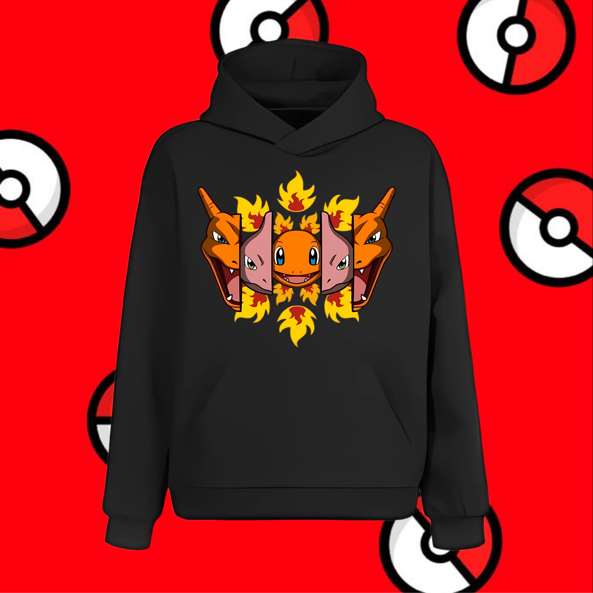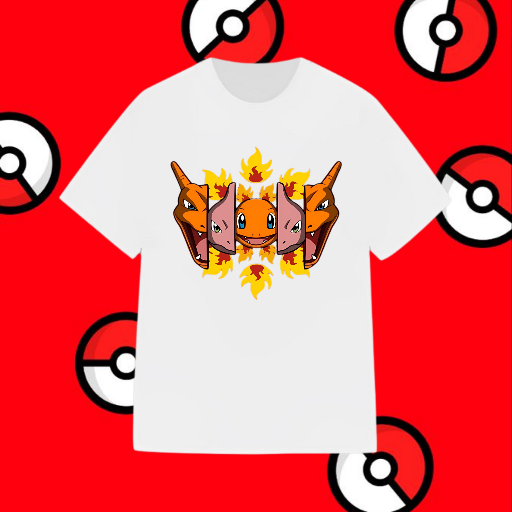 Descubre la evolución de Charmander con esta camiseta o sudadera exclusiva. Un diseño épico que muestra su transformación en Charmeleon y Charizard, ideal para los verdaderos fans de Pokémon. Fabricada con materiales de alta calidad, es cómoda y resistente.