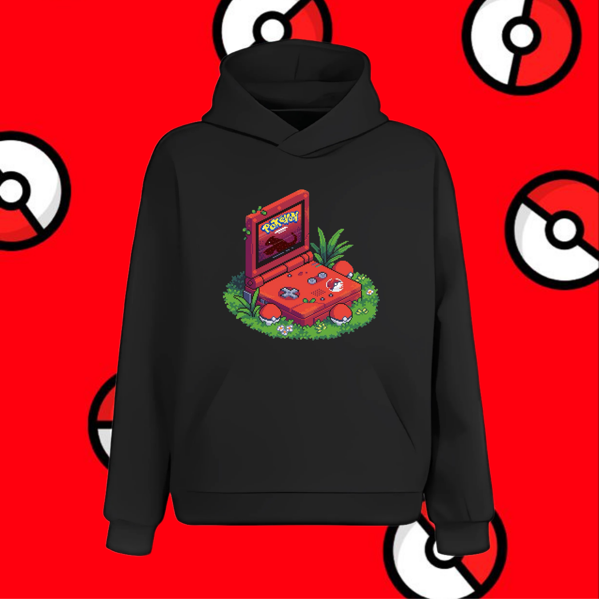 Camiseta/Sudadera con diseño de consola retro inspirada en Pokémon. Ideal para fans de los videojuegos y la nostalgia gamer. Con ilustración única estilo Game Boy Advance SP y detalles de Pokéball, es perfecta para cualquier entrenador Pokémon. Hecha con materiales de alta calidad, cómoda y resistente. Disponible en varias tallas. ¡Llévala y muestra tu pasión por Pokémon y los clásicos retro!