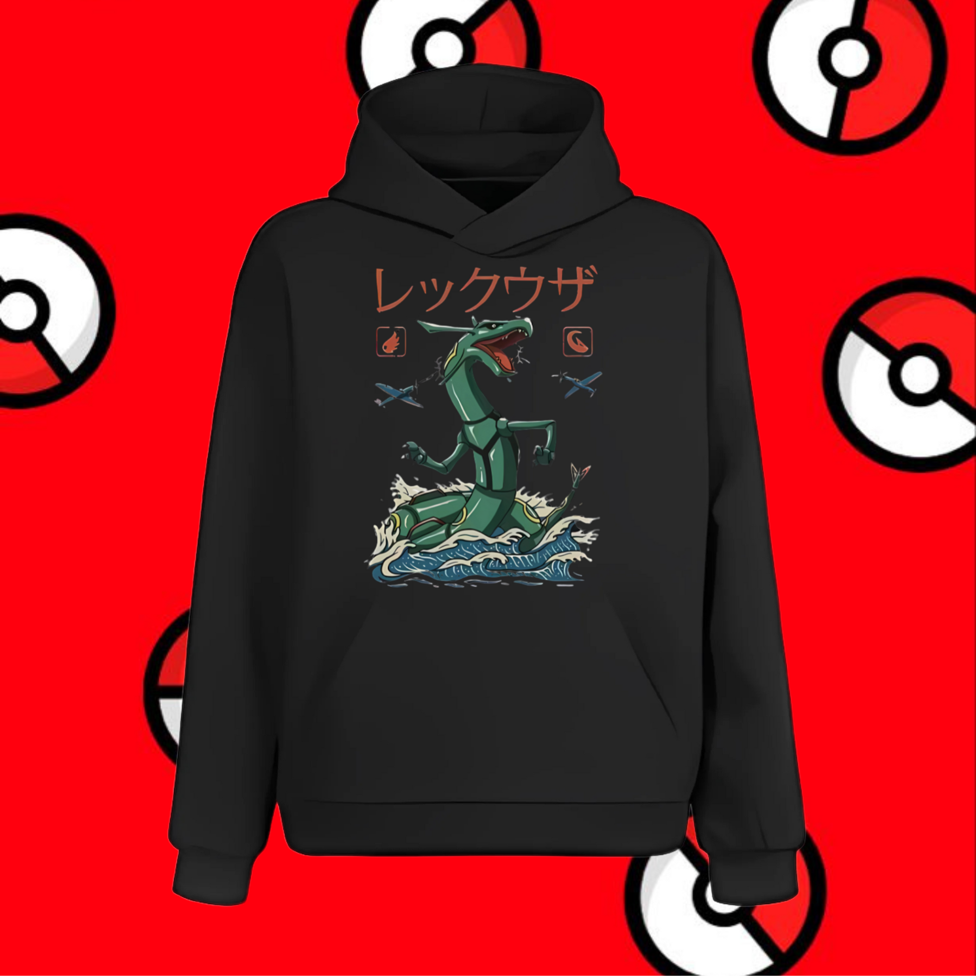Domina los cielos con esta espectacular sudadera de Rayquaza, el Pokémon legendario tipo Dragón/Volador. Su diseño vibrante y detallado capta la esencia de esta poderosa criatura, perfecto para los verdaderos entrenadores que buscan destacar con estilo. Ideal para el día a día o para lucir en eventos de la cultura geek.