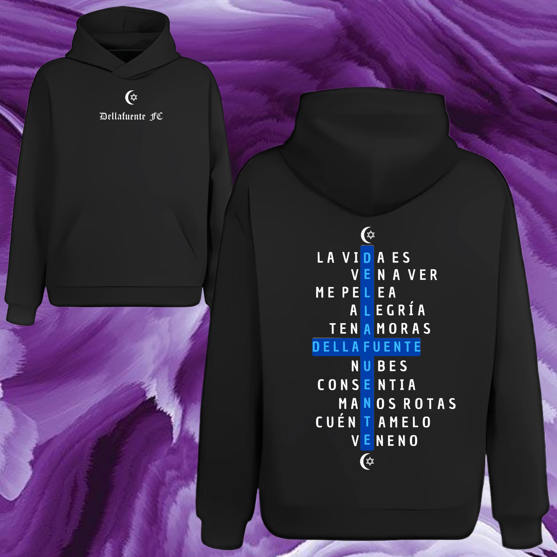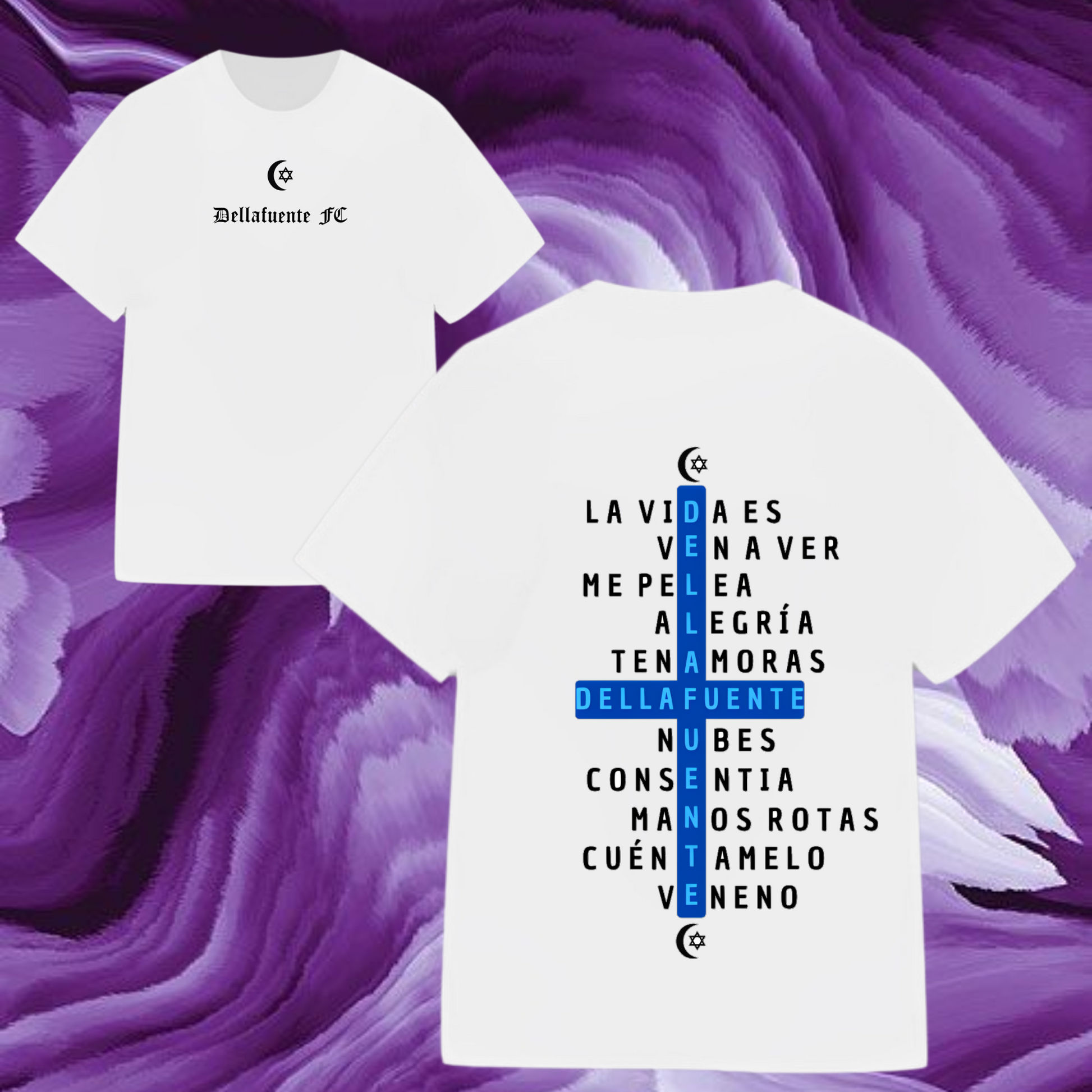 Felpa bianca con disegno delle canzoni Dellafuente in blu