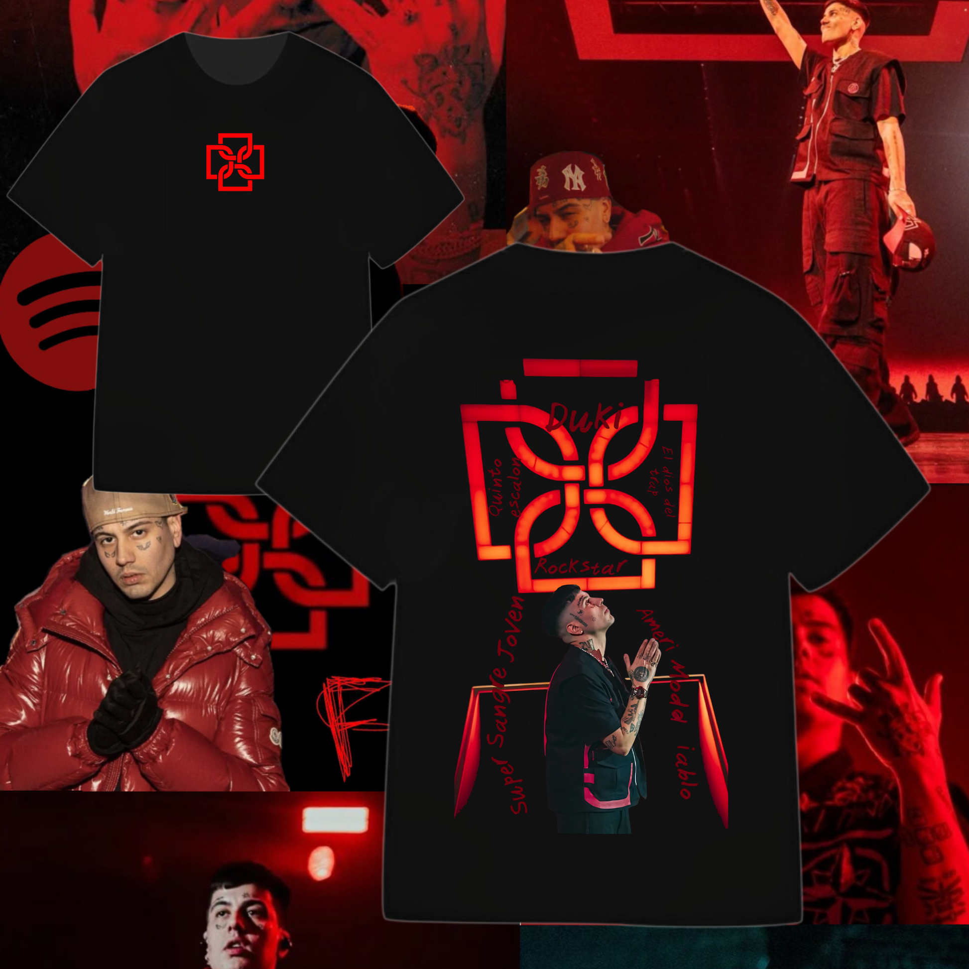 Lleva la fuerza y el flow de Duki contigo con esta camiseta exclusiva de diseño tipográfico. Inspirada en el estilo inconfundible del ícono del trap argentino, esta prenda es ideal para quienes viven y respiran la música urbana.